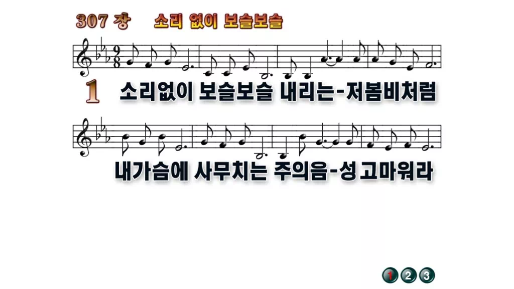 찬송가 PPT 다운로드] 307장 - 소리 없이 보슬보슬(WIDE / 무배경)